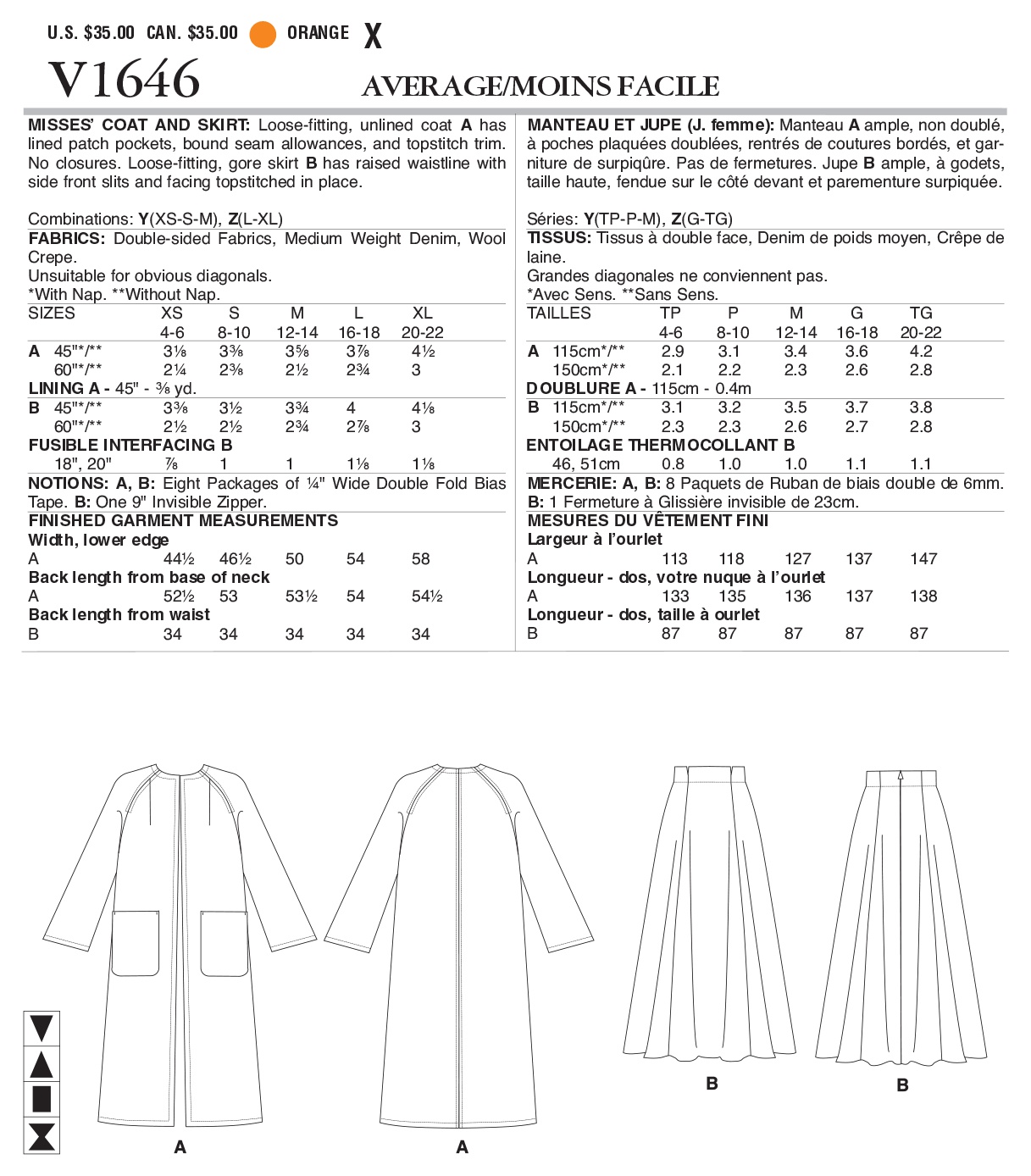 Vogue Patterns Pattern Rachel Comey Misses Coat And Skirt Sizes Xs S M Walmart Com